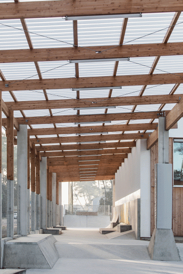 Entreprises : LALANNE (GROS OEUVRE)GEROARI (CHARPENTE MÉTALLIQUE)HOURQUEBIE (CHARPENTE BOIS)SOBEBAT ( ITE)CANCE (MEX)GEROARI (SERRURERIE)NOTTELET (PLATRERIE)DAMIBOIS (MIN)LESCA (CARRELAGE FAÏENCE)PUEL (CVP)CAPET (CFO CFA)THYSSENKRUPPPARC ESPACE (SKATE + VRD)PEINTURES D'AQUITAINE