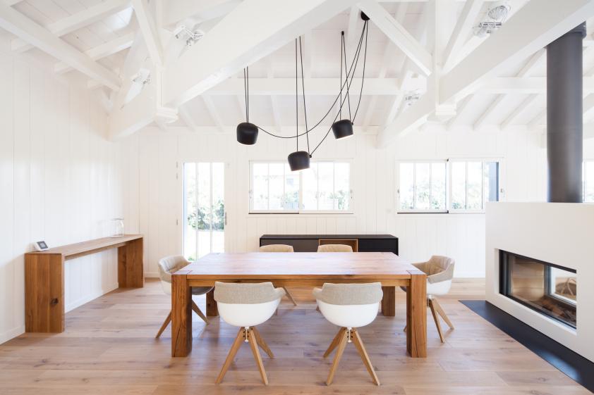 Maison en bois de 200m2, isolant en laine de bois uniquement,murs perspirants, charpente traditionnelle apparente sur le rez de chaussée, aménagement intérieur complet, cuisine, rangements, mobilier