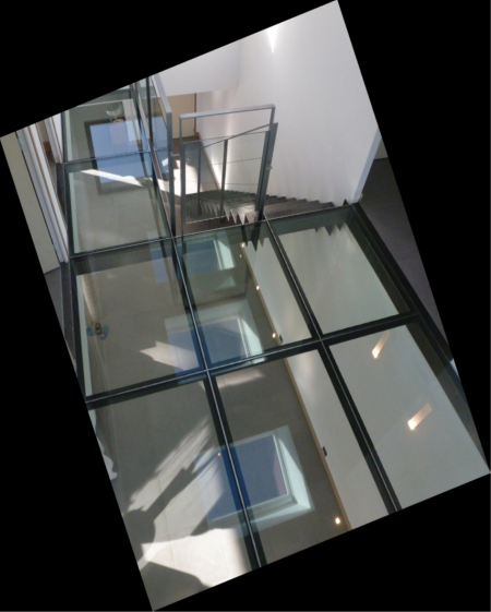L’espace à vivre lui-même a été rendu accessible par un emmarchement pour respecter les contraintes du terrain et sa forte pente.