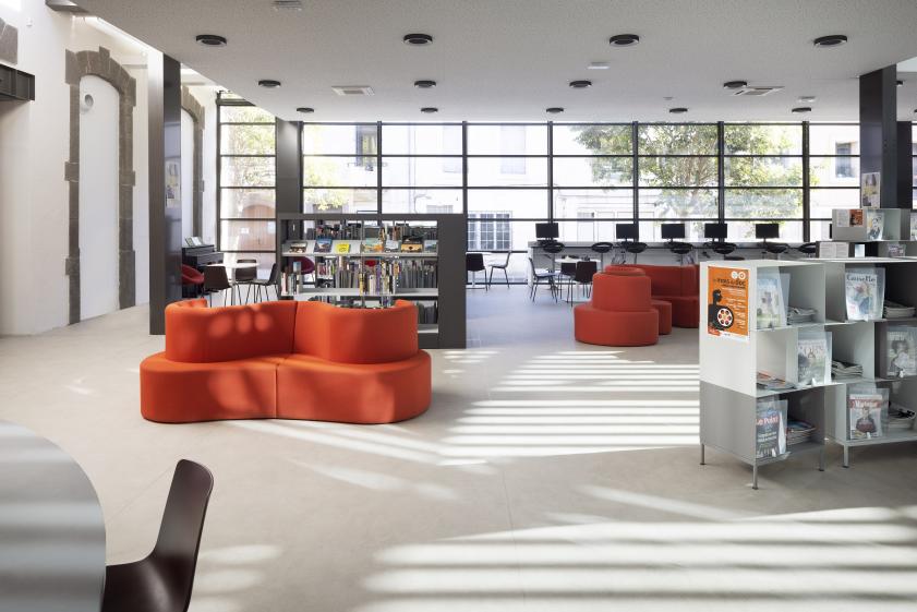 Côté médiathèque, les espaces ont été repensés pour améliorer le confort thermique, l’apport de lumière naturelle et agrandir certains espaces.