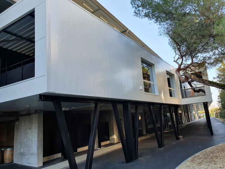 Création d'un salon VIP raccroché à l'arrière de la tribune Port-neuf, sur pilotis afin d'être distribué par la coursive intermédiaire et de constitué un grand abris au RDC. Rénovation totale et extension de la boutique officielle située au RDC sous la tribune.