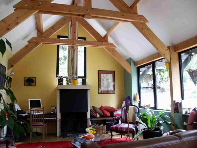 La façade donnant sur le jardin est entièrement vitrée et les baies sont soulignées par un brise soleil en bois, du coté du restaurant, les percements sont inexistants.