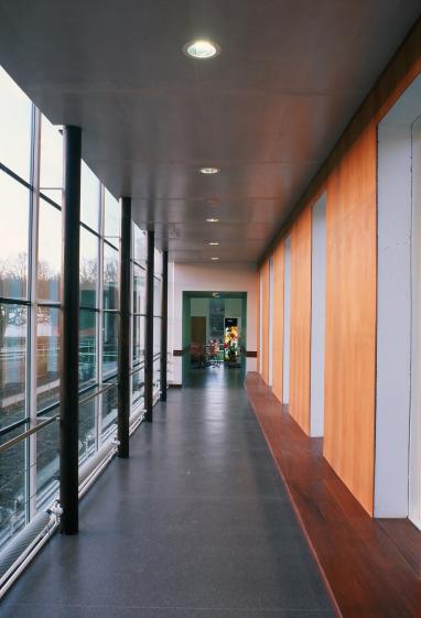 • Programme : création d'une galerie couverte et salon, ainsi que réaménagement d'un étage de pavillon avec salles d'ergothérapie, salle polyvalente, bureaux médicaux, archives, locaux du personnel et annexes
