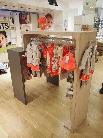 Création du nouveau concept pour l’enseigne de puériculture Aubert et sa première application en ville, Boulevard Poissonnière Paris (IIème arr.), Paris Bercy 2 (94) et La Vache Noire (94).
