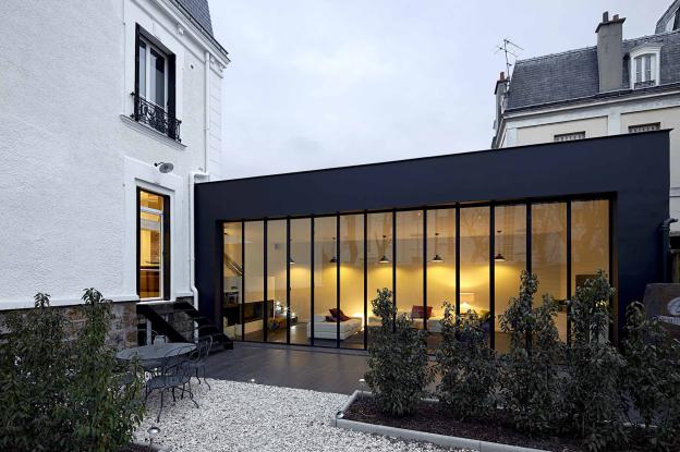 Projet d’une salle à manger/cuisine en extension avec création d’une annexe au nord de l’arrière cour, un jardin d’hiver et une terrasse au sud.