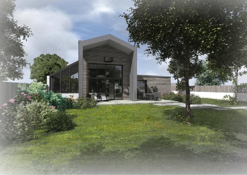 Dans un hameau près de Cugand (85), la maison s’implante sur une parcelle en longueur et à l’écart de la voie. Son implantation sur sa parcelle permet de bénéficier de toutes les orientations possibles. La composition en est simple, l’ossature bois est revêtue au rez-de-chaussée par un bardage bois et à l’étage par un bardage zinc.