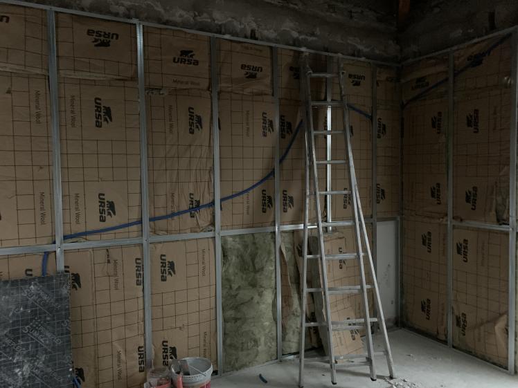 Une des principales interventions a consisté à transformer l’actuel garage du rez-de-chaussée de la façade Nord-Ouest en zone accueil/attente, l’ancienne porte en bois a été remplacée par l’entrée principale vitrée du centre médical, une porte automatique coulissante.