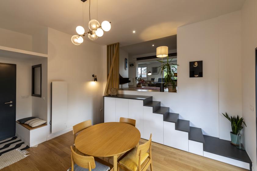 Nous avons travaillé ensemble sur un projet de réorganisation de l'intérieur, avec une connexion vers l'extension réalisée entièrement en bois.