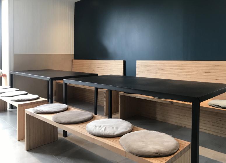 Les teintes et matériaux utilisés rappellent les contrastes et couleurs que la mer peux nous offrir. Nous avons également dessiné une partie du mobilier afin de répondre au mieux aux attentes des résidents.
