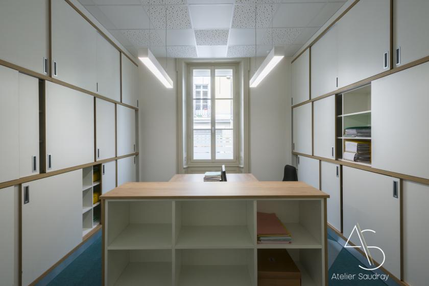 Réhabilitation thermique de bureaux d’un hôtel particulier pour un cabinet d’avocats à RennesÉtude thermique et acoustique.Étude de mobilier, d'éclairage et des choix de couleurs