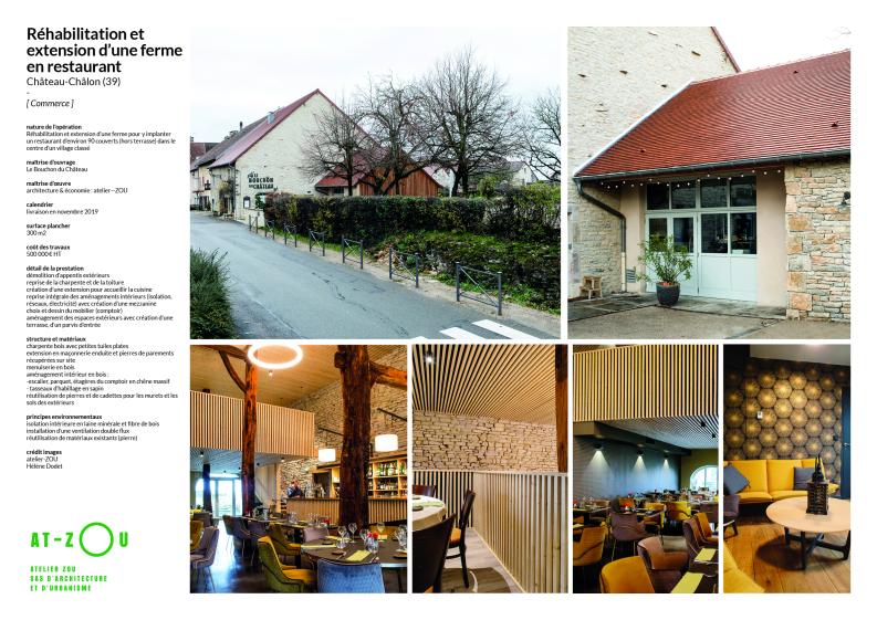 Réhabilitation et extension d’une ferme pour y implanter un restaurant d’environ 90 couverts (hors terrasse) dans le centre d’un village classé.