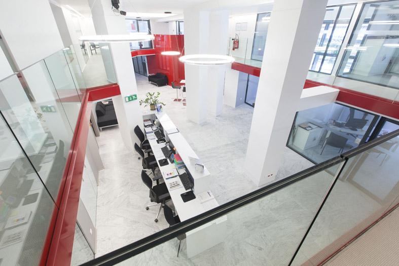 La hauteur est divisée en deux par une mezzanine existante conservée pour les besoins du programme.