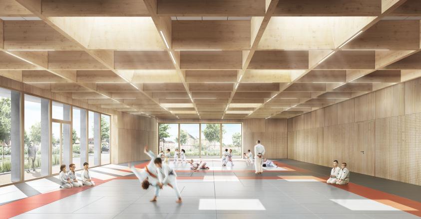 Restructuration d'une salle des fêtes.Construction d'une salle de gymnastique et d'un dojo.