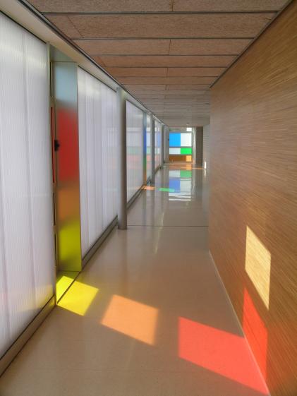Le bâtiment est une ampliation de la section de primaire d'un centre scolaire existant. Les classes sont organisées par blocs de quatre autour de leurs respectifs pôles de service, séparées par des cours et distribuées et illuminée par une façade en polycarbonate.