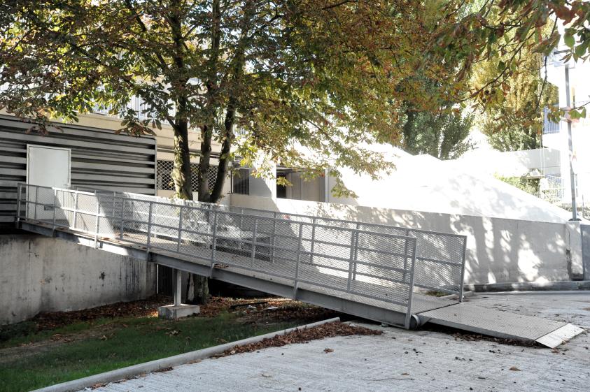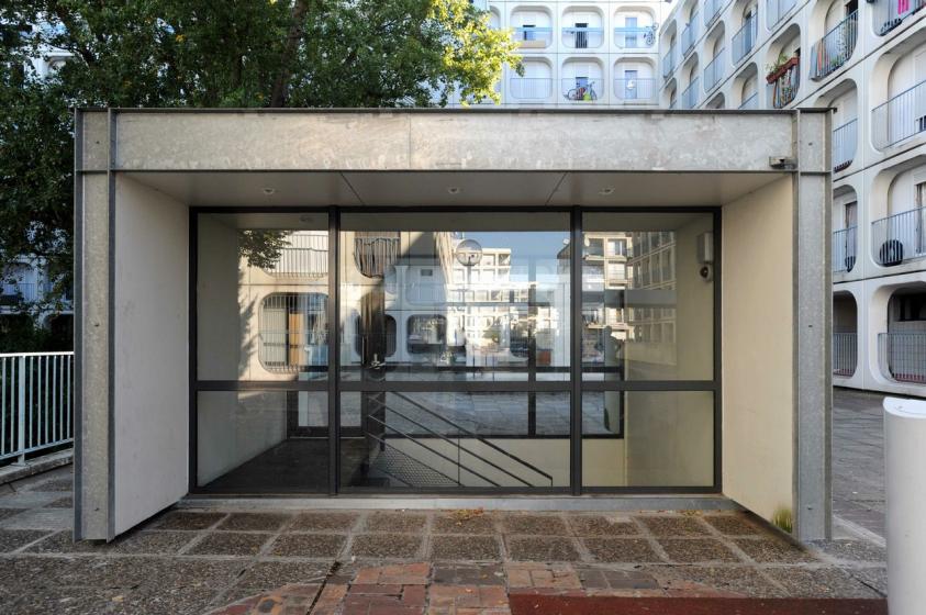 La résidence du Lac à Bordeaux, construite en 1972, comporte 330 logements en 8 bâtiments qui sont desservis par 20 entrées accessibles par une dalle piétonne abritant des parkings. L'ensemble est constitué de 6 bâtiments cubiques, d'une longue barre, et d'un huitième bâtiment en U. L'objectif du projet, est d'améliorer le confort des logements en remplaçant notamment tous les panneaux de façade, de rendre plus accueillant les halls d'entrée par une nouvelle esthétique, d'améliorer les accès à la dalle piétonne depuis les parkings en créant des escaliers sur dalle, et de sécuriser ces mêmes parkings. Nous y créons également des locaux vide-ordures ventilés par l'extérieur pour pallier aux graves problèmes d'hygiène dans les immeubles. Ils sont accessibles par des passerelles extérieures inclinées pour absorber les changements de niveaux. Photos : Laurent Wangermez