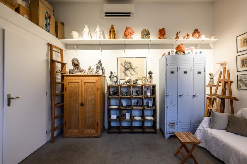 Conception et construction d'un atelier pour une sculpteure souhaitant disposer d'un espace indépendant de sa maison. Aménagement d'un espace lumineux, orienté au Nord pour bénéficier au mieux d'une lumière constante tout au long de la journée. L'atelier étant situé au fond du jardin, des cheminements ont aussi été aménagé afin de scénariser l'arrivée et d'envisager la présentation de sculptures à l'extérieur.