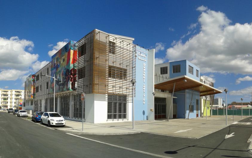 L’ecole Raphael Jolivière est située dans le quartier de Bergevin à Pointe à Pitre. Ce quartier en cours de rénovation dans le cadre d’une opération ANRU mettait à disposition un ilôt pour la construction d’un groupe scolaire de 14 classes.