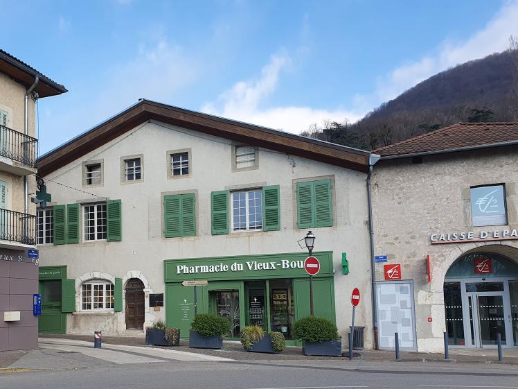 Le bâti est situé au pied de la rue piétonne du centre-ville de Voreppe. Il est historiquement un
