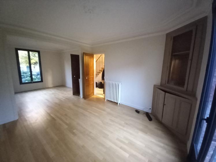 En sous-sol, reprise de tous les joints à la chaux pour laisser respirer la meulière. Au rez-de-chaussée, nous avons ouvert le mur porteur avec un renfort structurel et recréer les moulures. Ces ouvertures permettent de faire circuler la lumière, et les nouveaux meubles viennent organiser l'espace offrant de nombreux rangements (dans l'entrée, le salon et la salle à manger). Les courbes accompagnent la circulation en douceur. Pour la cuisine, une verrière en chêne avec des coulissants laisse passer la vue tout en gardant une pièce fermée selon les besoins. A l'étage, nous avons inversé deux espaces. La salle de bain devient un bureau et le dressing une salle de bain. Nous avons pu réemployer les sanitaires et la robinetterie en bon état.