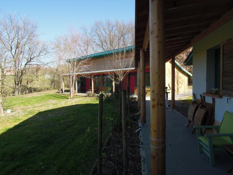 chambre d’hôtes en lien avec l'habitation pour un agriculteur bio en rurbain - construction mixte ossature bois -béton - démarche écologique - économies de moyens - d'énergie (utilisation de la chaudière bois de l'entreprise) -