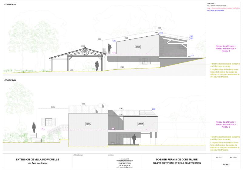 Le projet, en tant qu'extension d'une habitation existante, prendra place au niveau des façades Nord, Est et Ouest de la villa. Seule la façade Sud sera conservée à l'identique.