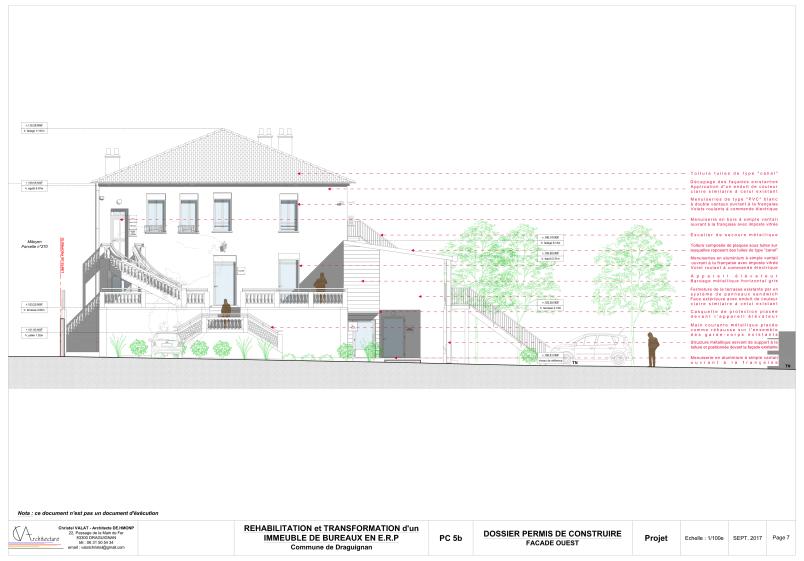 Le volume général de la construction conservera ses 3 niveaux tels qu'ils existent aujourd'hui et seuls certains éléments nécessaires à sa nouvelle fonction seront réalisés.