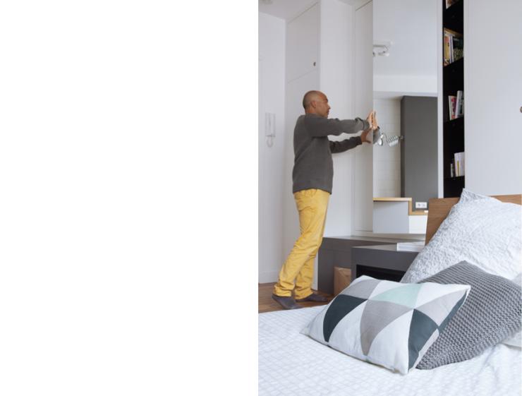 Ce petit appartement de 22 m² est issu de la division d’un plus grand. C’était en fait une chambre et une petite salle de bain qui n’avaient subi aucune transformation depuis plusieurs dizaines d’années. Le programme était simple. Il fallait faire de cet espace un appartement ultra fonctionnel regroupant toutes les fonction d’un plus grand. Il devait pouvoir accueillir 2 personnes et le propriétaire souhaitait également utiliser des matériaux pérennes pour ne pas avoir à refaire de travaux trop souvent.