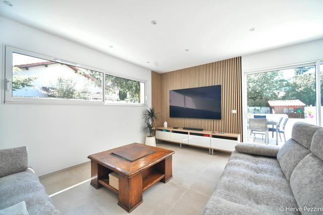 Réorganisation des pièces du RDC de cette maison de type "plan Favier", création d'ouvertures en façade et création d'une extension de 42m² avec piscine.