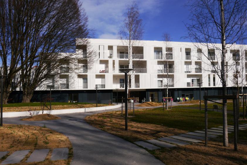 Le projet de l'EHPAD Nouste Soureilh s'insère au coeur de l'ilôt Bideguain, parcelle en friche située entre la faculté, une école maternelle et des résidences familiales. Avec son jardin ouvert sur l'environnement et ses façades animées, l'EHPAD devient moteur d'échanges entre les résidents et les riverains ainsi qu'une nouvelle vitrine pour le quartier.
