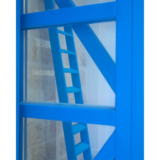 Une grande importance est accordée à la relation avec la rue : la verrière bleue laisse entrer la lumière et sert de filtre entre l’intérieur et l’extérieur. Le choix de cette couleur vive marque la transition entre le dedans et le dehors...