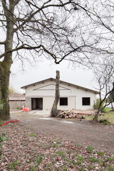 Les clients souhaitent agrandir et rénover la maison pour pouvoir y inviter famille et amis, tout en conservant le langage architectural original du bâtiment, qui joue sur l’alternance de parties en pierre et enduites. En ce qui concerne l’extension, résolument contemporaine, une grande importance est accordée aux espaces ouverts et au dialogue entre intérieur et extérieur, accentué par de grandes parties vitrées et l'utilisation de la couleur pour souligner certains éléments tels que poteaux, escaliers et garde-corps.