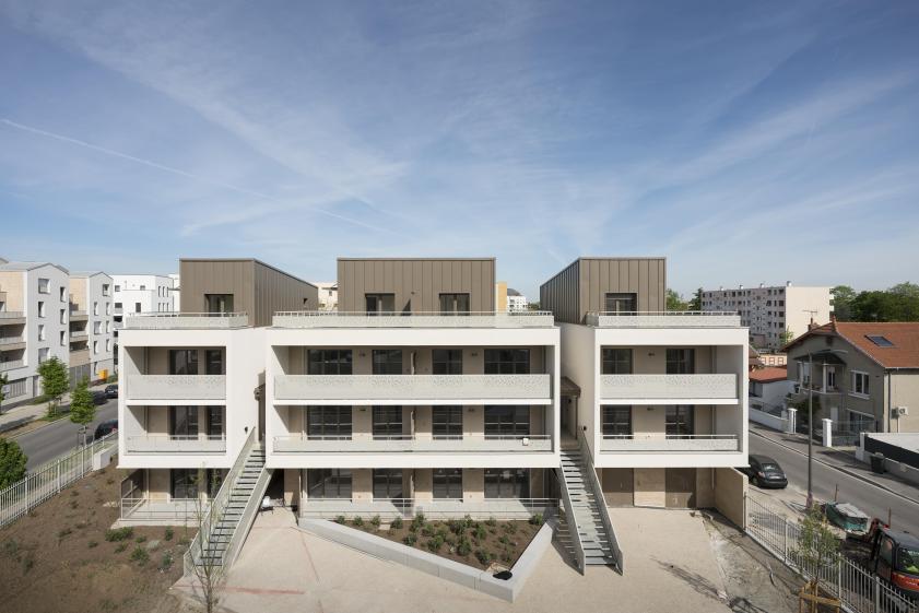 Le projet s’inscrit dans le cadre d’une réflexion urbaine et paysagère de la Zac du triangle à Saint-Priest. La position de la parcelle est singulière par sa longueur et se taille en forme de proue sur le croisement de deux rues. Le site du projet tout en longueur s’offre alors à la vue.