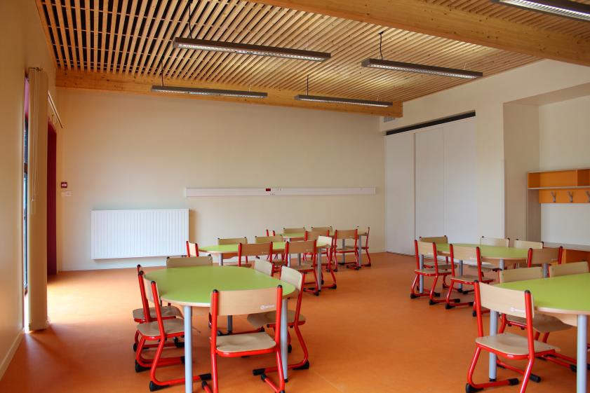 PROGRAMME > Construction d'une garderie périscolaire entre les 2 écoles primaires (publique et privée) de la commune • Restructuration partielle et extension du restaurant scolaire communal et partagé entre les 2 écoles devenue indispensable pour faire face à l'augmentation des effectifs d'élèves