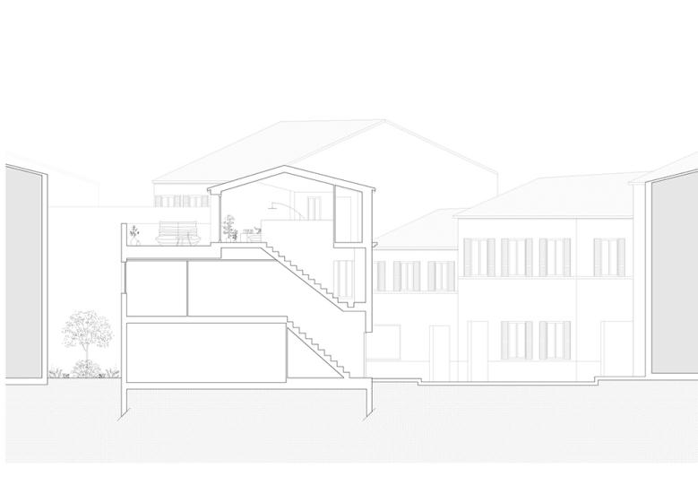 La densité d’un ancien noyau villageois offre peu de percées visuelles sur le grand paysage. L’affirmation d’un séjour en surélévation et d’une terrasse de surface équivalente rappelle l’importance de la vie extérieure du Sud.