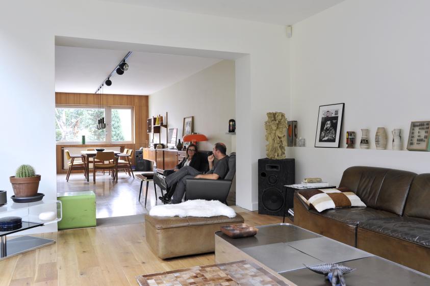 Le volume de l’extension permet d’étendre le séjour. Une ouverture maximale a été recherchée afin de capter le maximum de lumière et faire communiquer l’espace intérieur avec la terrasse extérieure.