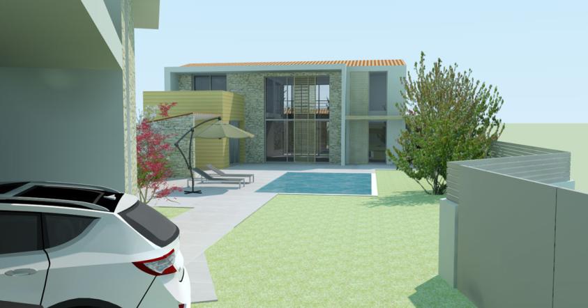 Création d'une maison neuve, piscine et Pool House.Style contemporain.Aménagement intérieur.