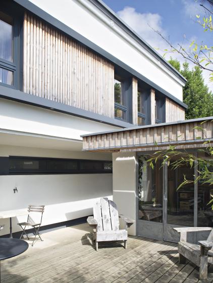 Le projet de rénovation énergétique par isolation extérieure respecte et souligne le dessin originel de la maison dite « Champignon » dont ce quartier de Rennes compte plusieurs exemplaires. Le projet sera l’occasion de créer une cuisine et un salon d’été dans le jardin.