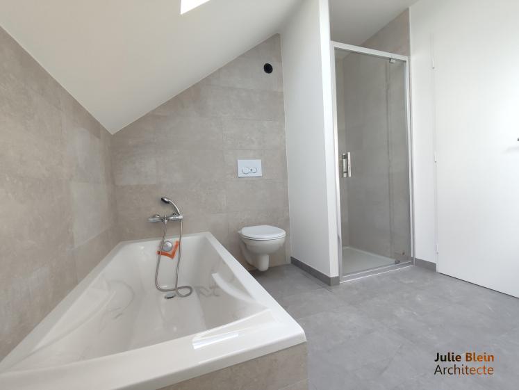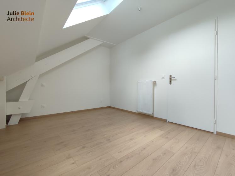 Seuls la dalle basse, les murs extérieurs et la toiture ont été conservé. Le plancher de l'étage a été entièrement recréé. Isolation par l'intérieur en laine de bois, étanchéité à l'air.
