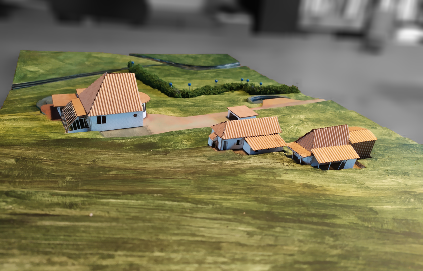 Le tout sera isolé en paille locale par le maître d’ouvrage devenu charpentier, doté de menuiseries en bois avec triple vitrage et revêtu de briques de réemploi et d’un enduit terre-chaux aux teintes locales.