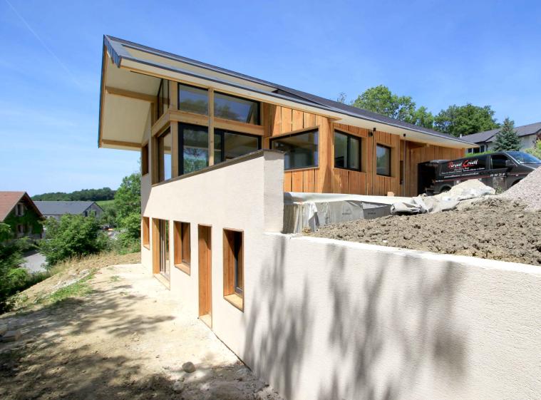 Séjour et terrasses s’offrent entièrement au panorama des chaines du Jura et des Alpes.