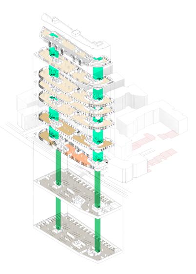 Réhabilitation d'un immeuble de bureau avec modification de l'affectation des surfaces en créant deux ERPs : un restaurant et un espace de co-working.