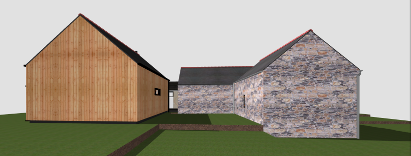 Mission de l'architecte : Conception jusqu'aux permis de construire.Extension en ossature bois sur dalle béton.Utilisations de bois locaux non traités (ossature douglas et bardages).Surface : 111 m².Type de chauffage : poêle à bois.
