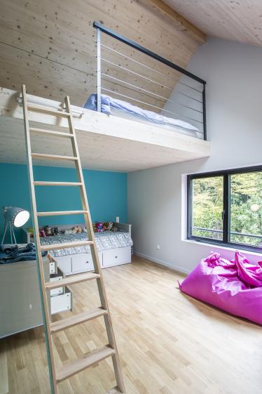 Utilisations de bois locaux non traités (ossature et bardages en douglas).