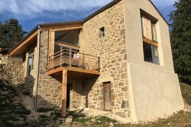 Cette ferme caractéristique des Boutières présente un ensemble bâti très cohérent avec le volume d’habitation et le volume grange / étable accolé, complété des volumes annexes.