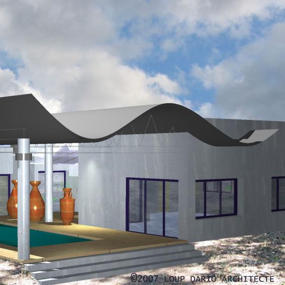MAISON DEMARCHE PASSIVHAUSPUITS CLIMATIQUE / PISCINE COUVERTE PAR UN TOIT COURBE PHOTOVOLTAIQUE AMORPHEPRODUCTION SOLAIRE ECS / CONSTRUCTION BOIS INITIALEMENT PREVUE EN BRIQUES MONOMUR