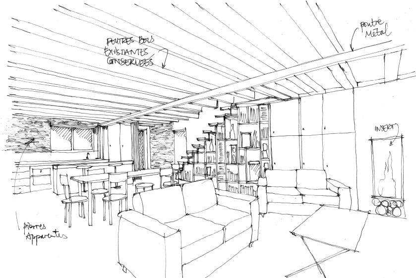 Situé à 20 minutes en vélo du centre ville de Rennes, cette ancienne annexe de corps de ferme possédait des atouts complètement masqués. Les façades intérieures et extérieures en pierres étaient enduites et la charpente en chêne fut laissée invisible. De plus, cette bâtisse était une passoire thermique non ventilée.