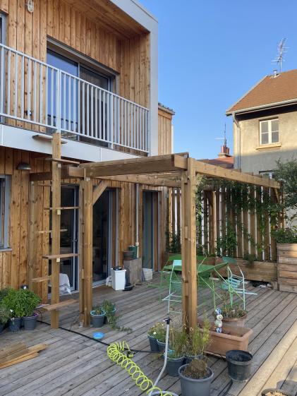 Comment habiter la toiture terrasse d’un entrepôt du quartier Berriat ? en installant une maison de ville en sur-élévation avec terrasse, balcon et tropézienne !