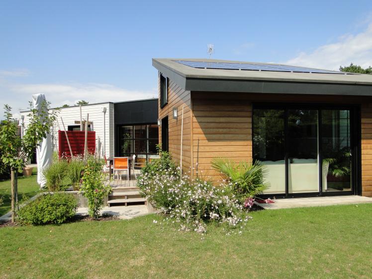Cette maison a été réalisée dans le but de respecter au mieux l'environnement avec la mise en œuvre de matériaux écologiques (isolation chanvre, toiture végétalisée) et d'une technologie performante (chauffage par géothermie, eau chaude solaire et production photovoltaïque).