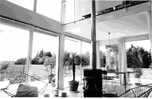 Plantée en plein champ, maintenant entourée d'un joli bosquet d'essences variées, la maison est conçue comme un observatoire du paysage. 2 chambres et un bureau distribués par une coursive en balcon sur le séjour dominent le paysage.