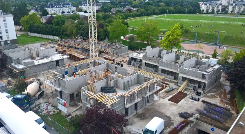 Réalisation d'un ensemble de logements collectifs et de maisons individuelles accolées.